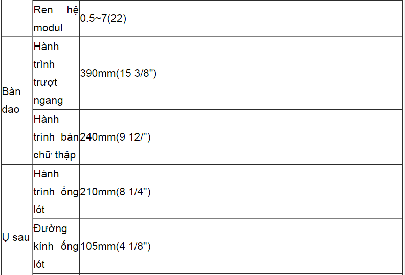 THÔNG SỐ KỸ THUẬT